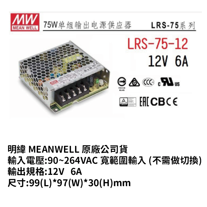規格:LRS-75/12V 6A/ $290NT